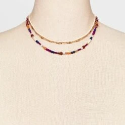 Semi-Precious Aventurine Jasper Lapis Opal Quartz Beaded Necklace Set 3pc – Universal Thread™