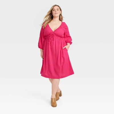 Women’s Tie-Front Puff 3/4 Sleeve Midi Dress – Universal Thread™